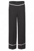 闊腿黑色長褲。 腿部前部和後部有褶皺,腰部和腳踝處飾有白色格紋腰帶細節。
